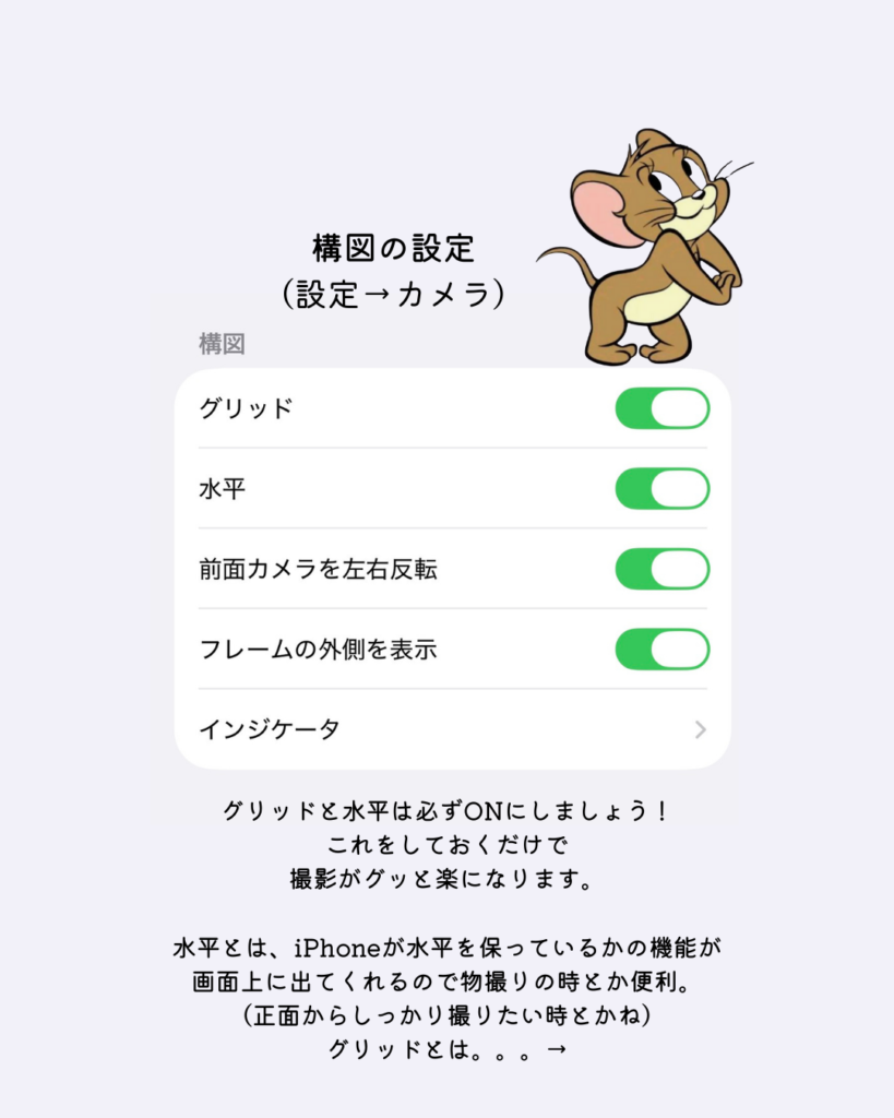 設定 → カメラ → グリッド → ON